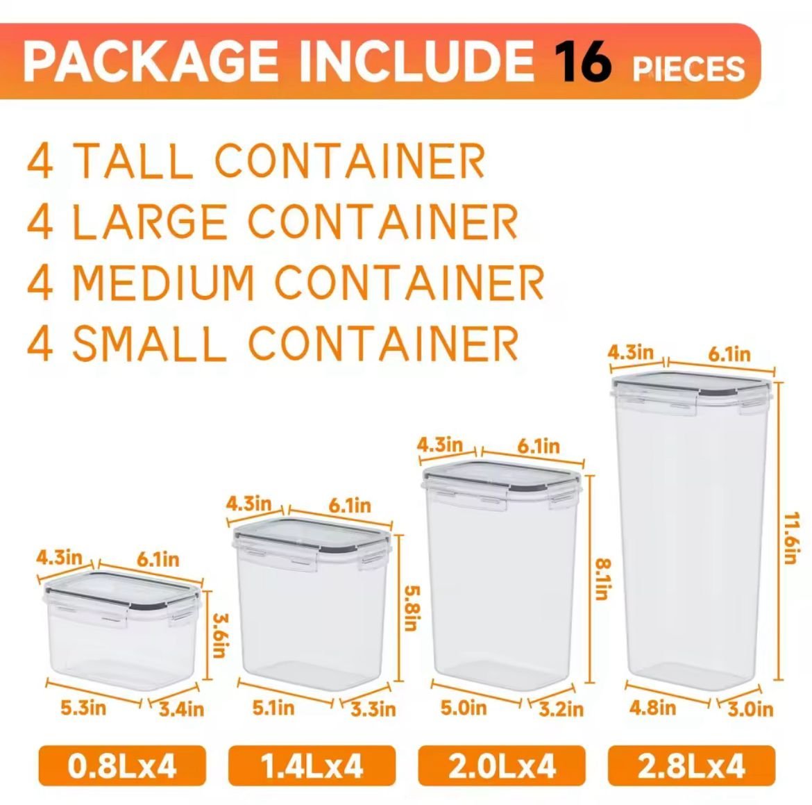 ▫️Capacity: 4pcs*800ml, 4pcs*1400ml, 4pcs*2000ml, 4pcs*2800ml